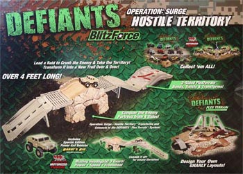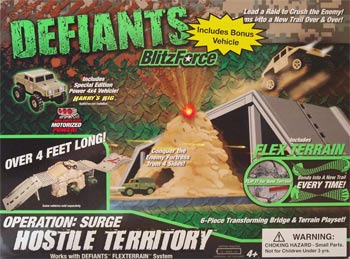 Defiants BlitzForce Operation: Surge Hostile Territory. 6 piece transforming bridge and terrain playset. Over four feet long and includes special edition Harry's Rig.